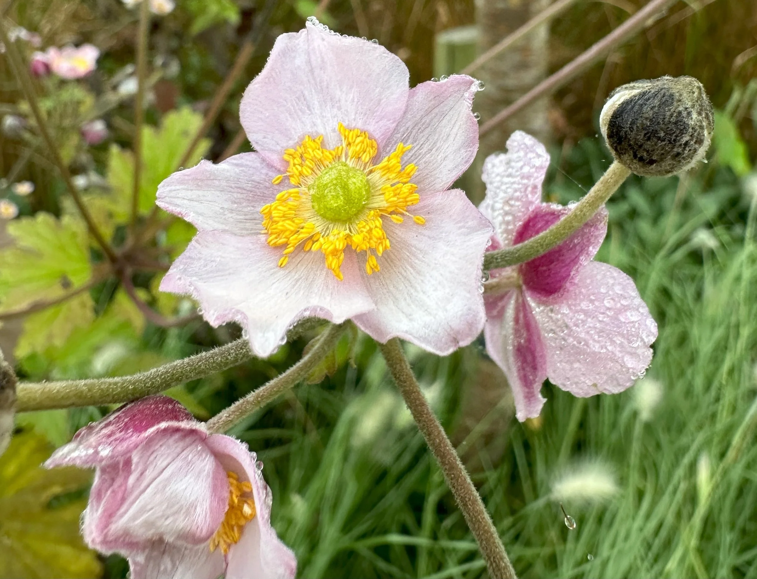 I love the tall slender flower spikes on this Heuchera and the bumblebees do, too. There are many heucheras with amazing foliage colours to add a little something different if you’re looking for contrasting colours to offset your planting scheme.