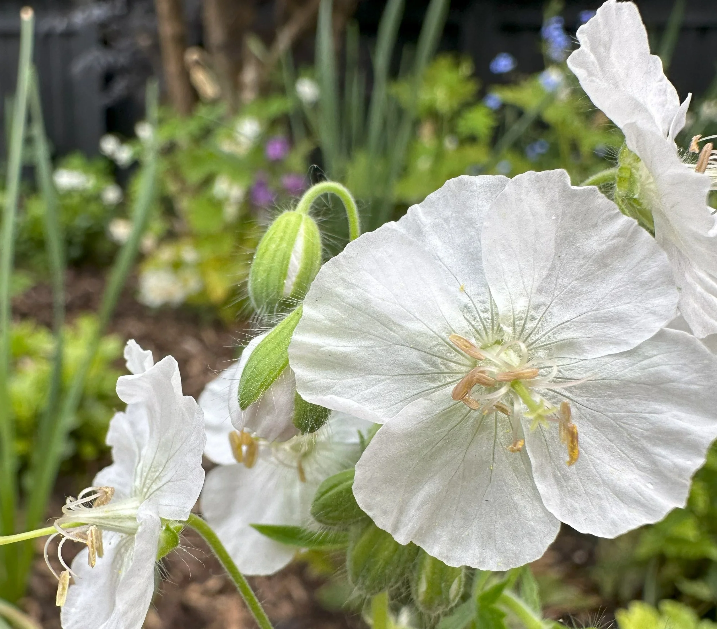 If you’re going for quite a woodland theme, I think that Geranium Phaem Album makes a lovely addition with it’s white flowers popping up here and there bringing that brightness to the shady border.